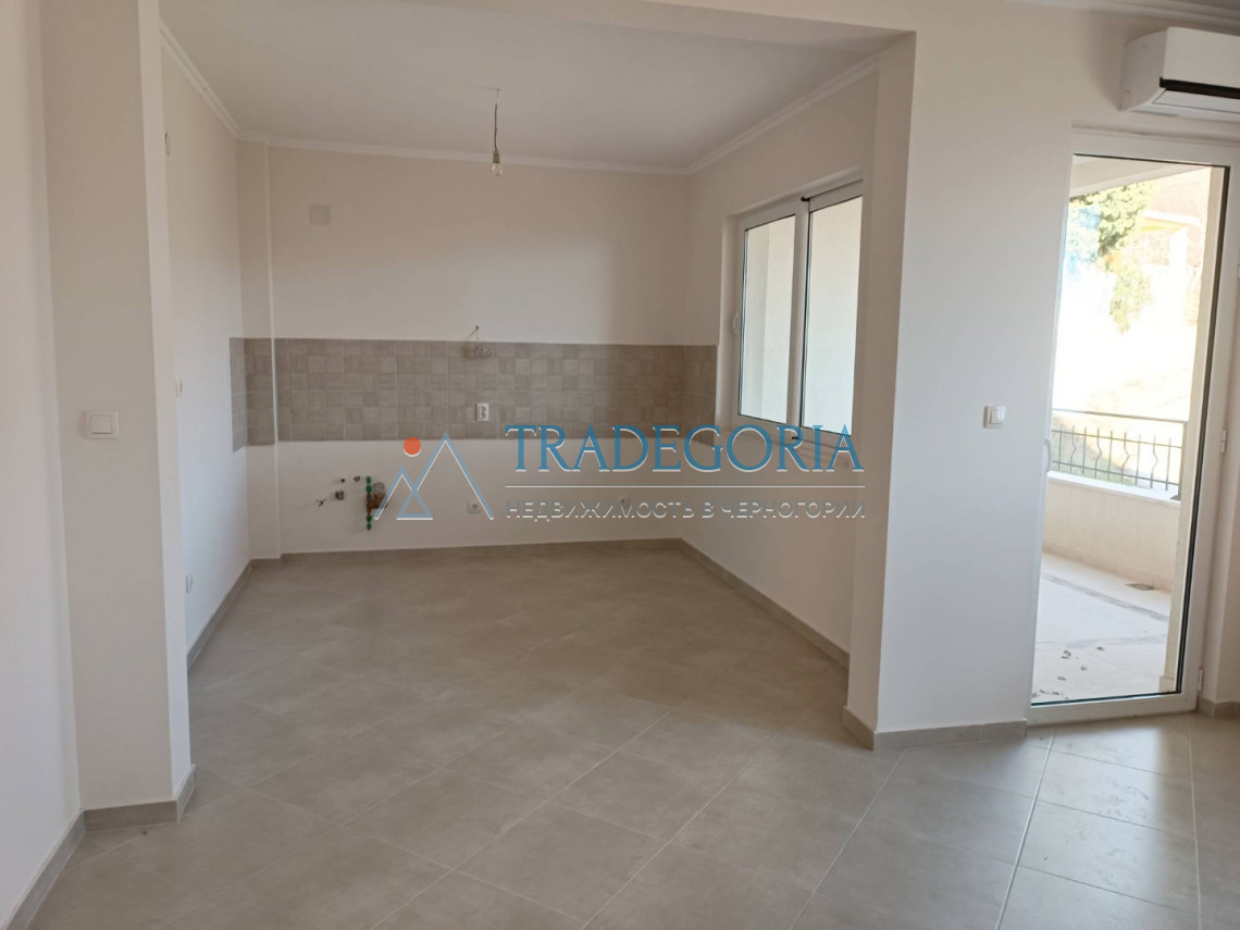 Die Wohnung besteht aus einem Flur, einem Wohnzimmer mit Küche, einem Badezimmer, einem Schlafzimmer und einer geräumigen Terrasse.