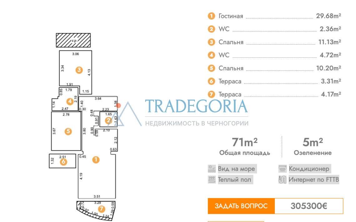 Total area of the apartment: 71 m²