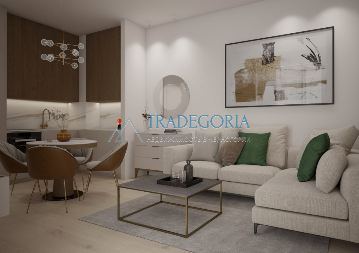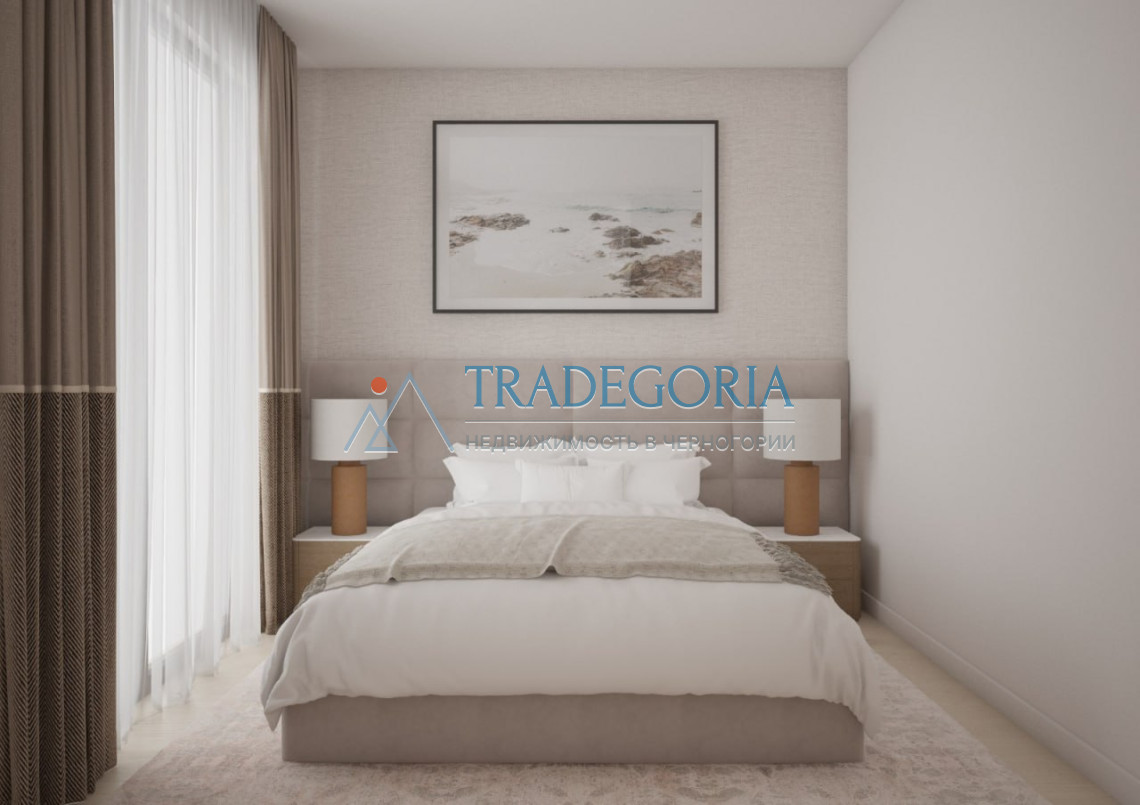 The apartment is located in the residential area of Becici, a prestigious part of the Budva Riviera. The center of Budva and the beach are about 10 minutes walk away. Nearby are shops, restaurants, the embankment and business infrastructure. The area is characterized by silence, greenery and rapid growth in real estate prices.