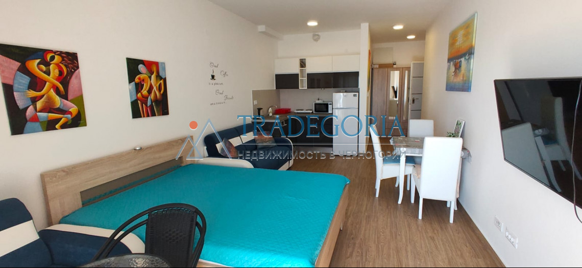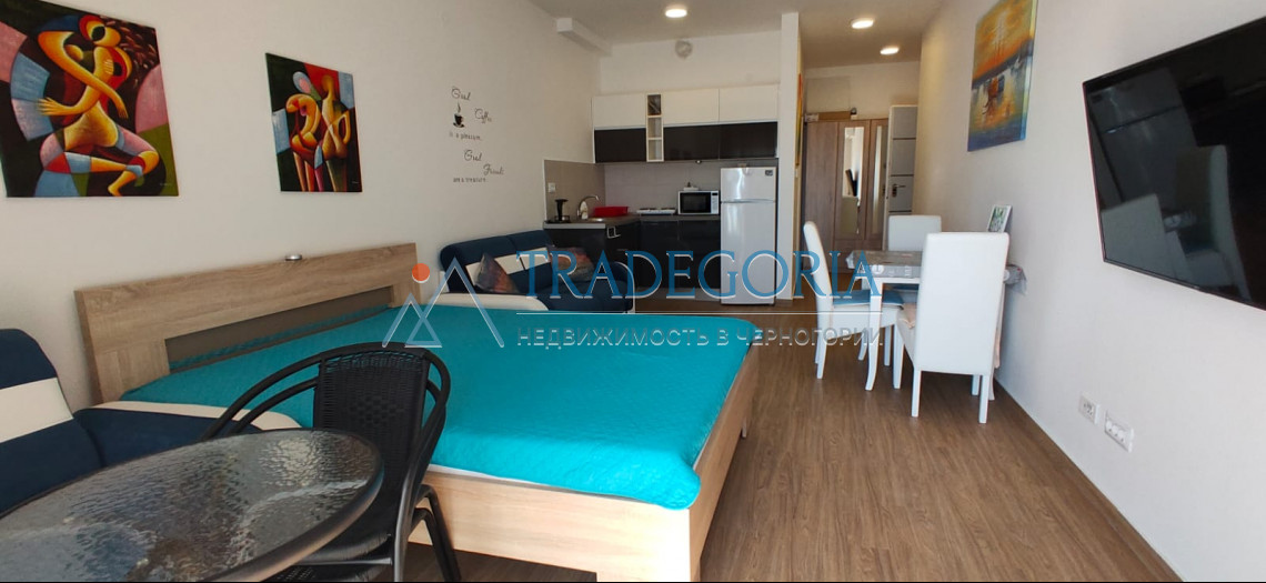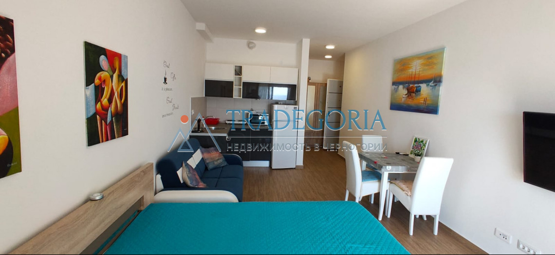 The studio of 38 m2 is located on the second floor. These apartments stand out for their modern style and elegant furnishings. The structure of the apartment: entrance hall, bathroom, living room combined with kitchen, terrace.