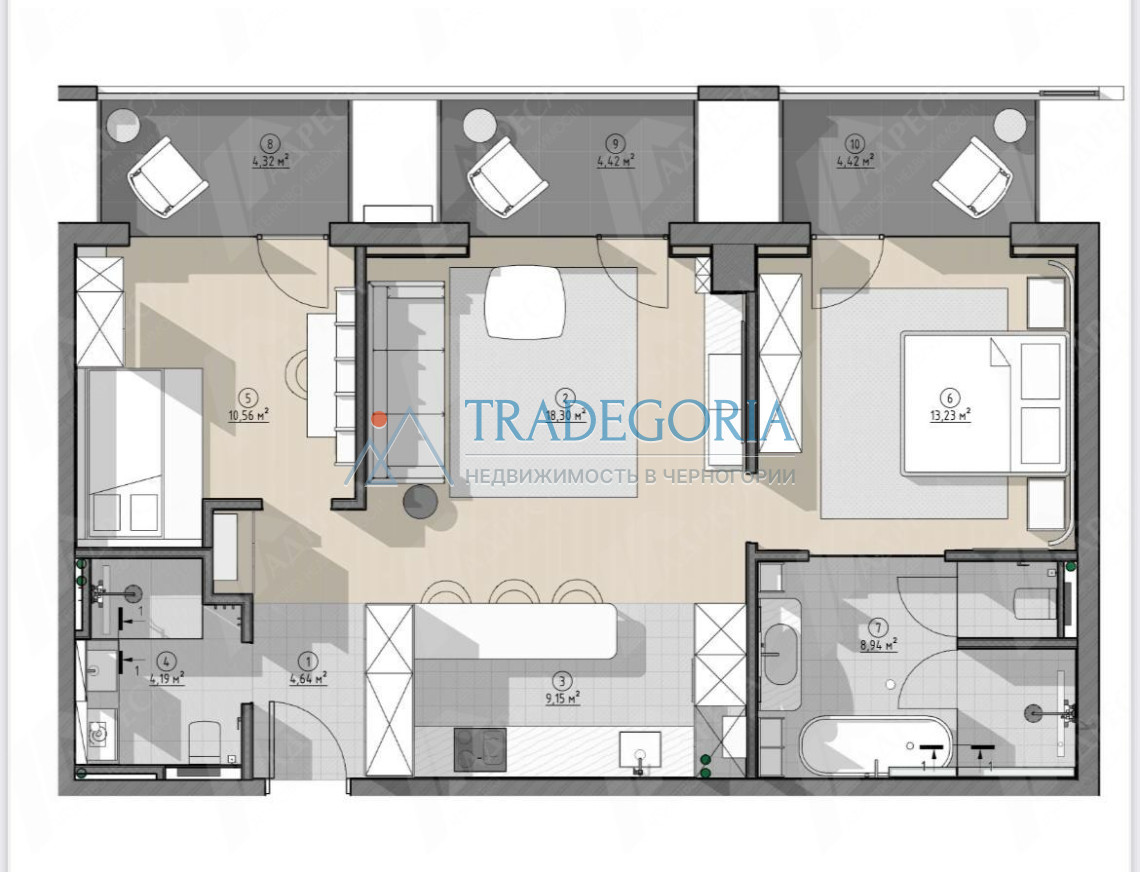 Excellent apartment in a new building in Budva.