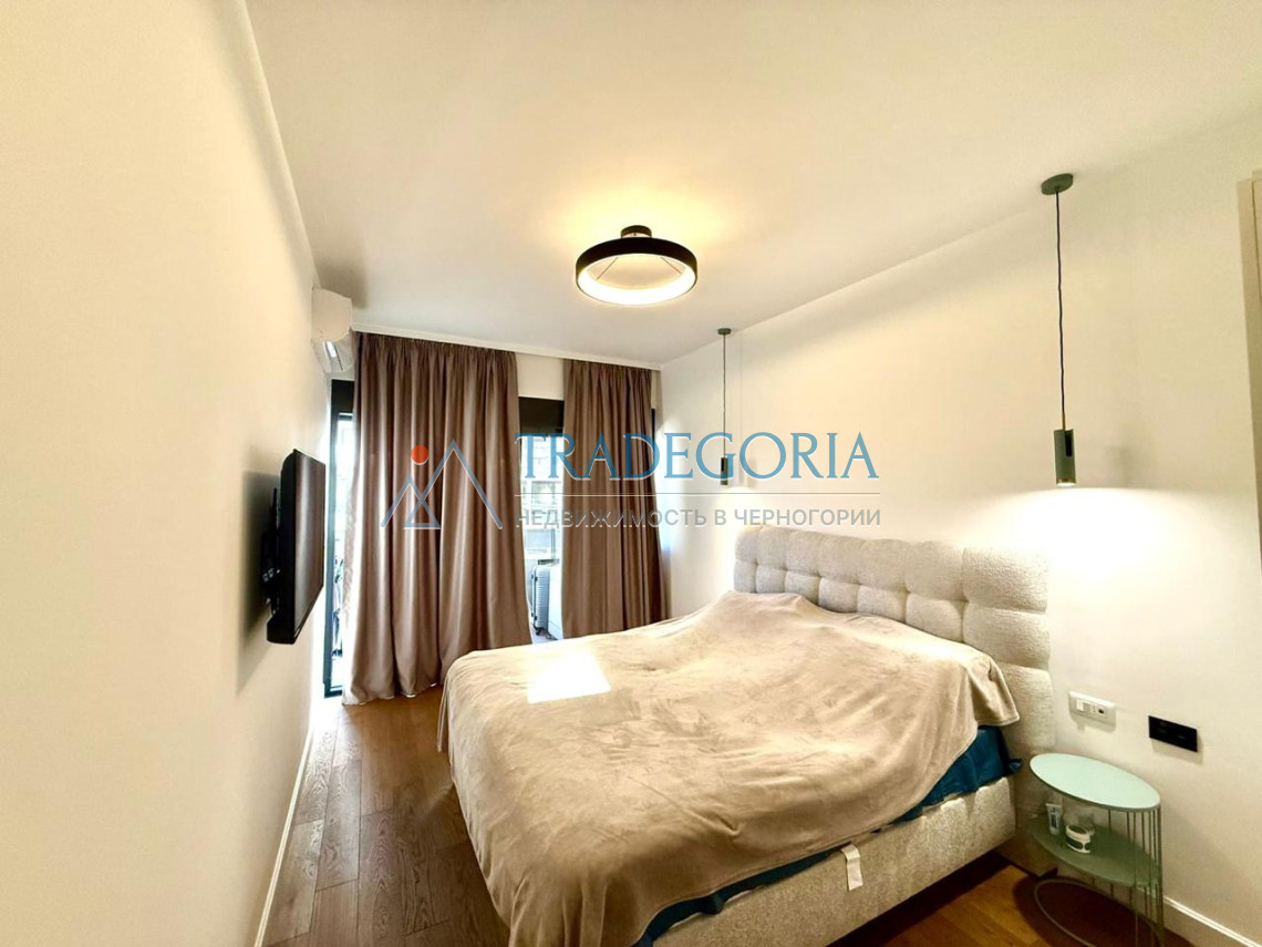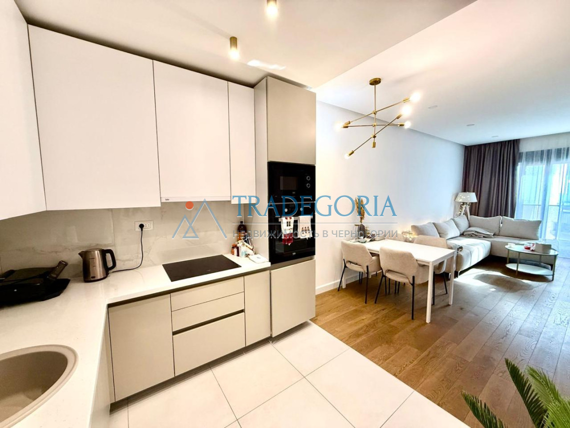 The apartment is designed in a contemporary style using high-quality materials. It is equipped with high-quality furniture and appliances and is ready for occupancy without any additional investment.