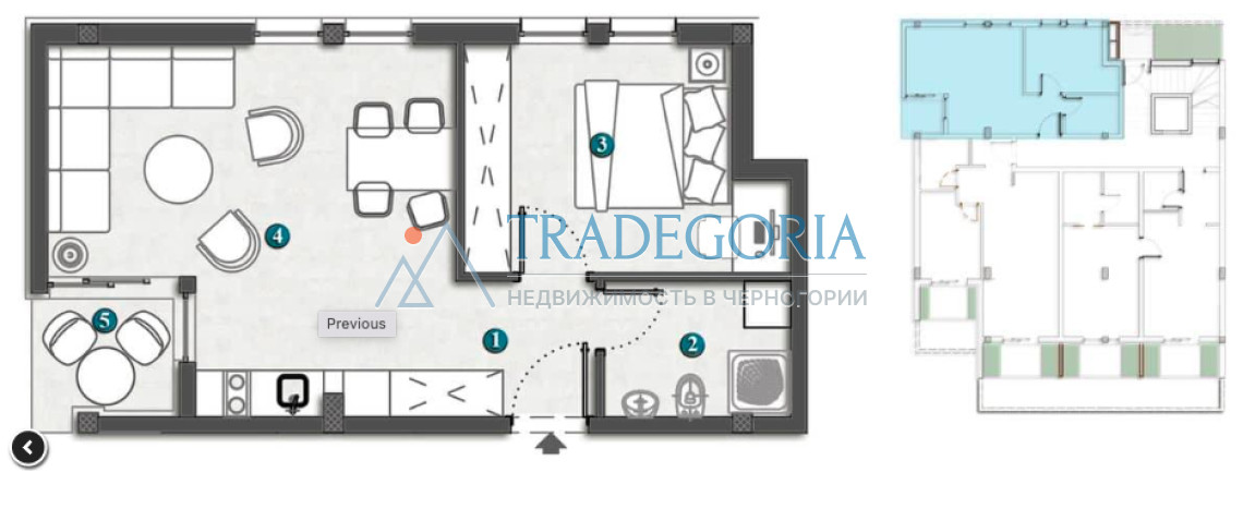 Количество спален: 1