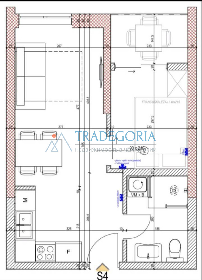 Планировка: гостиная с зоной кухни, оборудованный сан.узел, выделенная спальня, терраса.