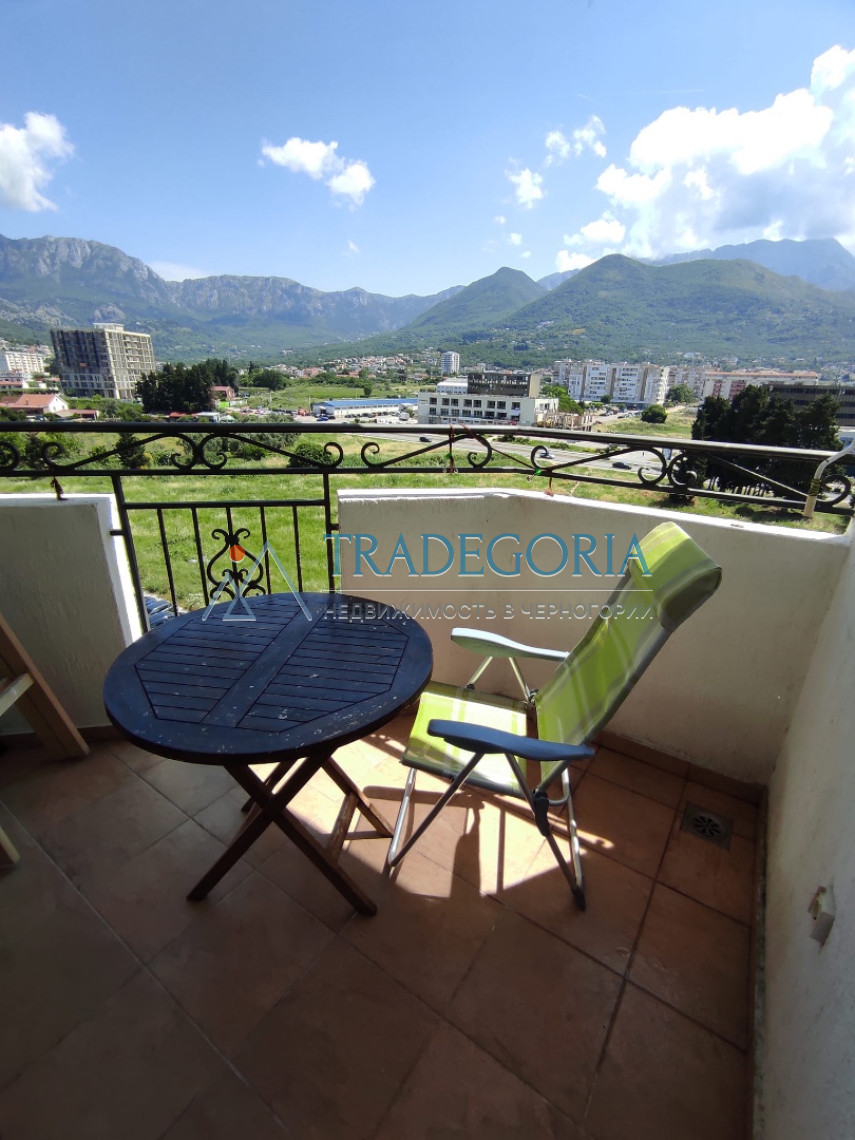 По структуре квартира состоит из прихожей, просторной гостиной совмещенной со столовой зоной и кухней, спальни, санузла, террасы с видом на город и горы.