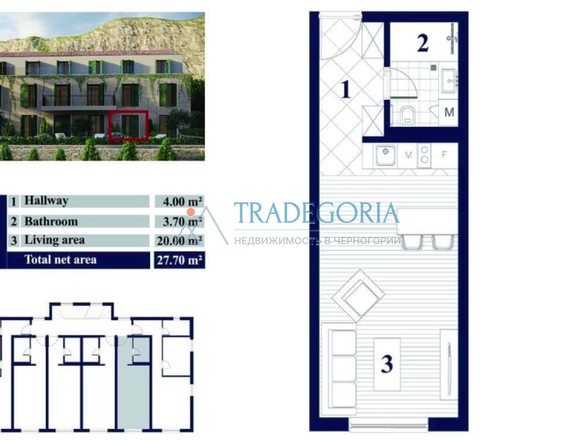 Парковка: подземный паркинг (место приобретается отдельно за 28 000 €)