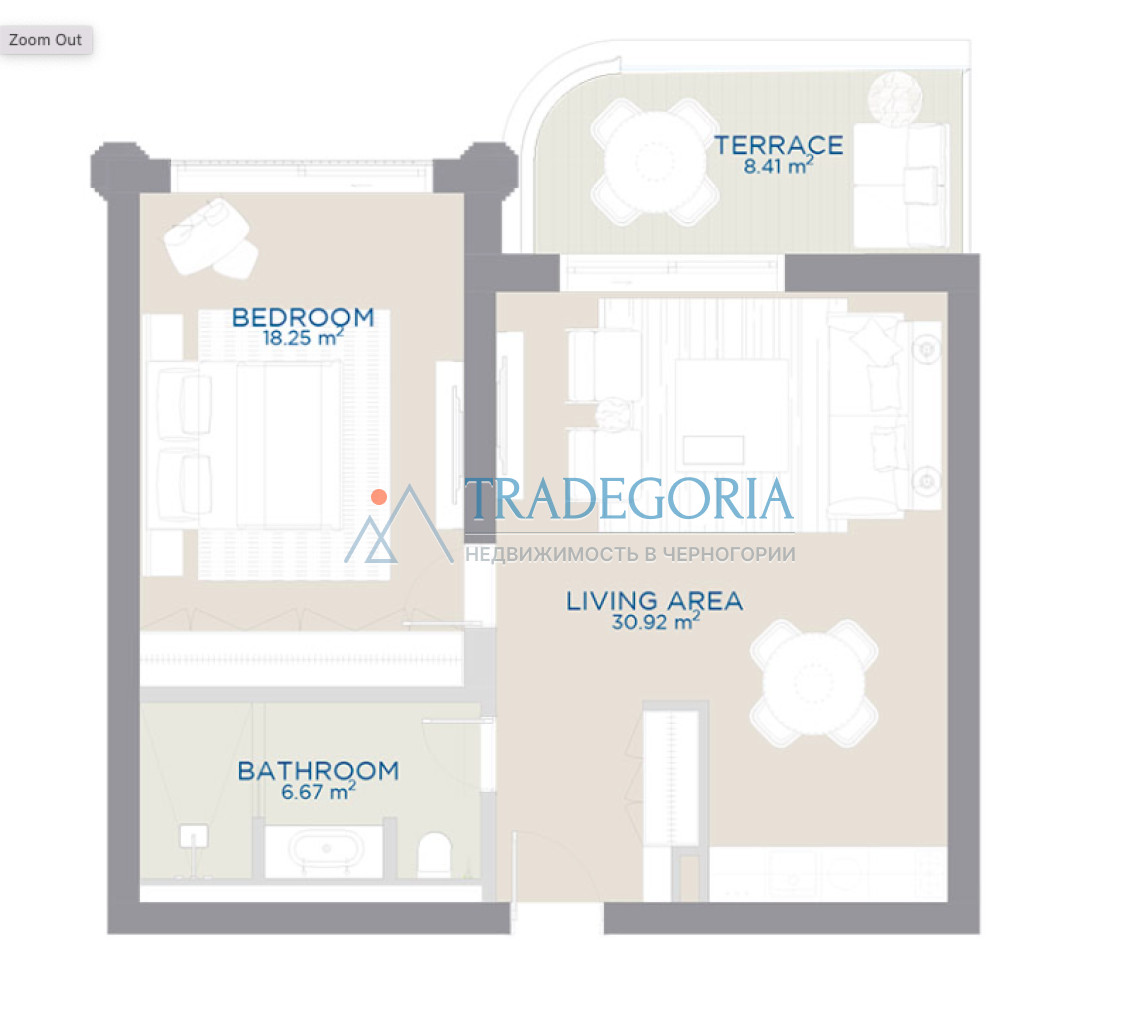 Жилая зона (Living area): 30,92 м²