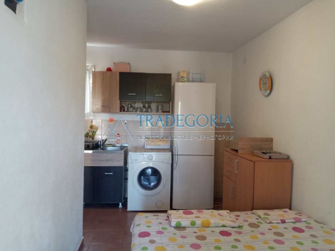 Просторная терраса, прихожая, гостиная- спальня, кухня, санузел.