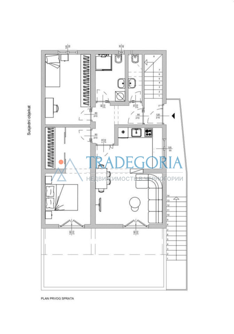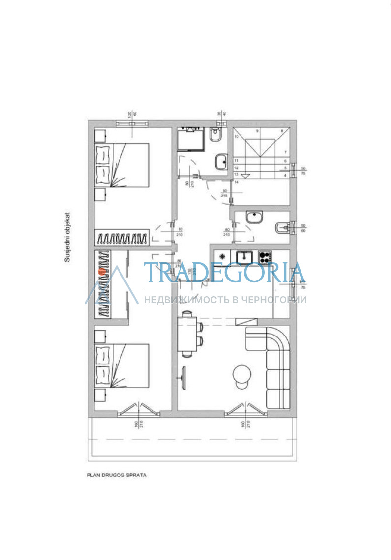 Станови се налазе на другом и трећем спрату у недовршеној згради у Сутомору.