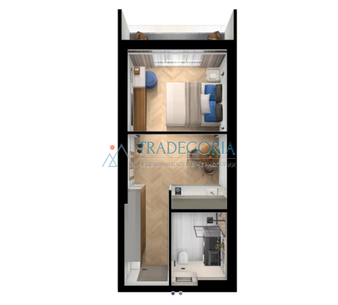 Компактан, приступачан студио апартман у пословном комплексу близу Новог булевара, 5 минута од мора.