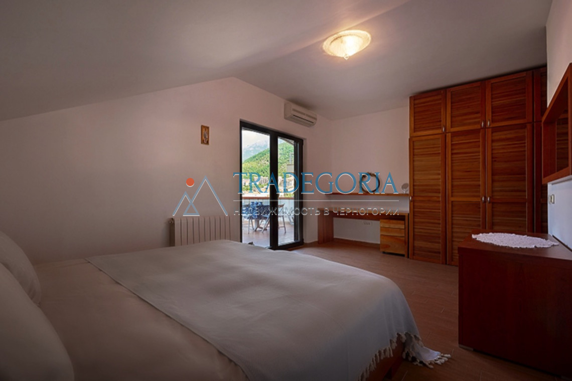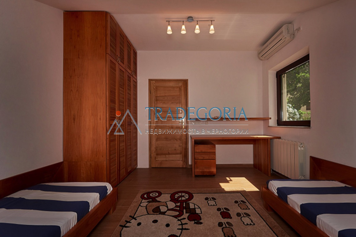 2 спаваће собе - велика главна спаваћа соба и пространа дечија соба, дневни боравак, трпезарија/кухиња, галерија-канцеларија, улазни хол, купатила -1, + 1 тоалет за госте, огромна тераса са панорамским погледом на море , насип и острво Свети Никола.