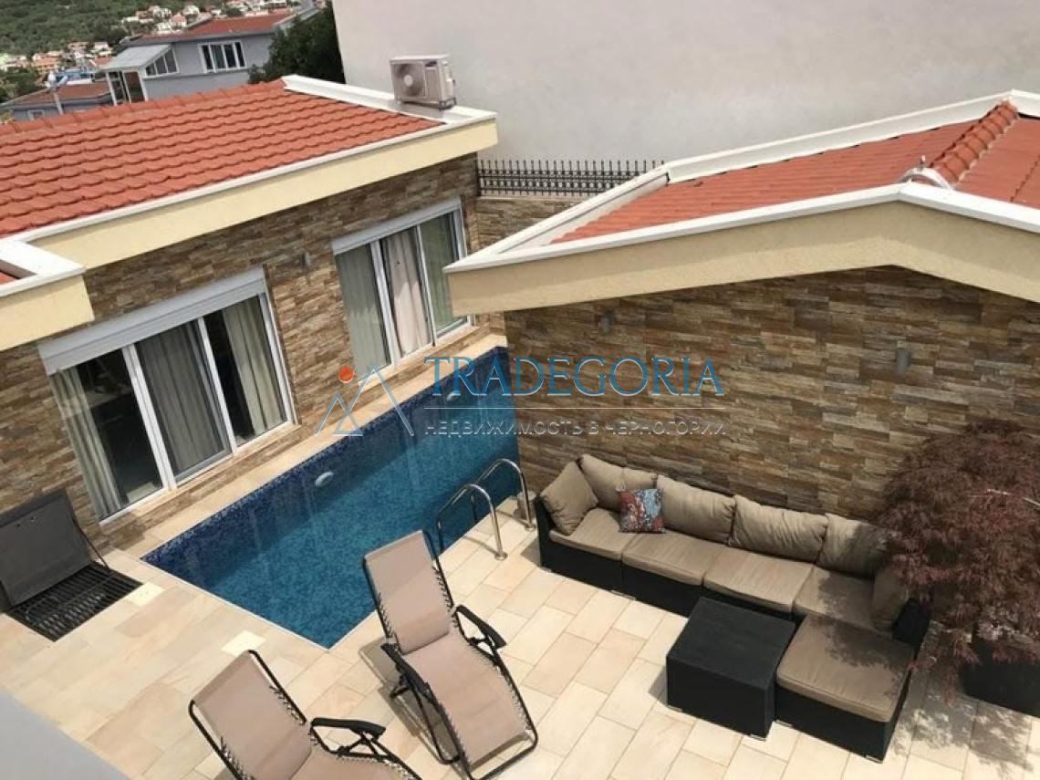 Вила у Добрим Водама са панорамским погледом на море и базеном, близу плаже.
